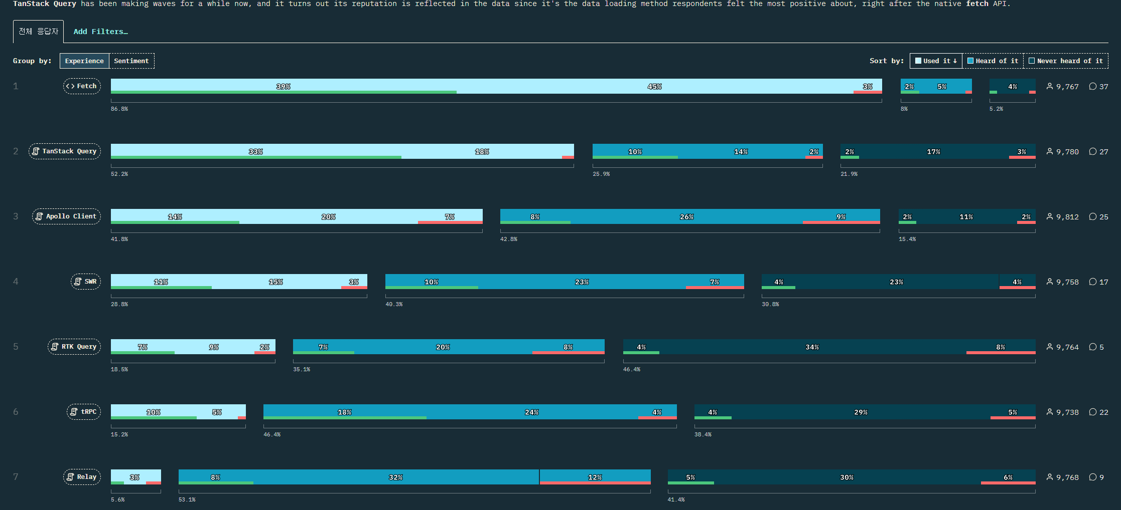 첫 리액트 설문이라 년도별 추이도 없어서 아쉬운점이 많았던것 같다.